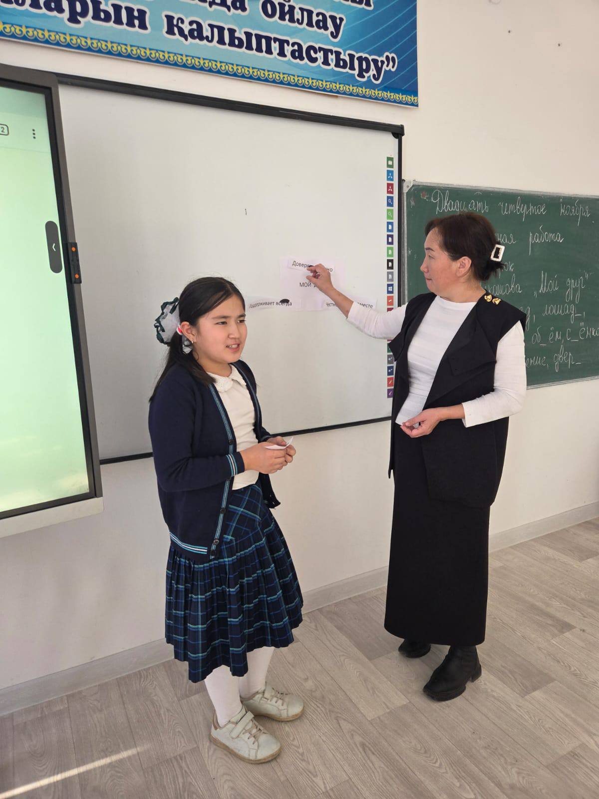 Түркістан облысы Отырар ауданының білім бөліміне қарасты "Қ. Мұңайтпасов атындағы жалпы білім беретін мектеп" коммуналдық мемлекеттік мекемесінде "Шежіре" бірлестігінің айлық іс-шара негізінде орыс тілі пәнінің мұғалімі Ж. Базылбекова 5 "а" сынып оқушыларымен О. Чекашова "Мой друг" атты тақырыпта ашық сабақ өткізді.Оқушылар түрлі әдістер арқылы өз білімдерін көрсете білді.